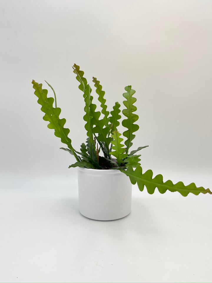 The Fishbone Cactus (Epiphyllum anguliger) is an extraordinary cactus native to the rainforests of Mexico. Its distinctive long, flat stems resemble a fishbone, which inspired its name. Initially growing upright, the stems eventually trail down as they lengthen. As an epiphytic plant, the Fishbone Cactus develops aerial roots, similar to its natural environment where it would attach to a host plant. This ornamental cactus boasts fascinating foliage with beautifully wavy margins that undulate along the stem, hence its alternate names: Fishbone Cactus or Zig Zag Cactus.