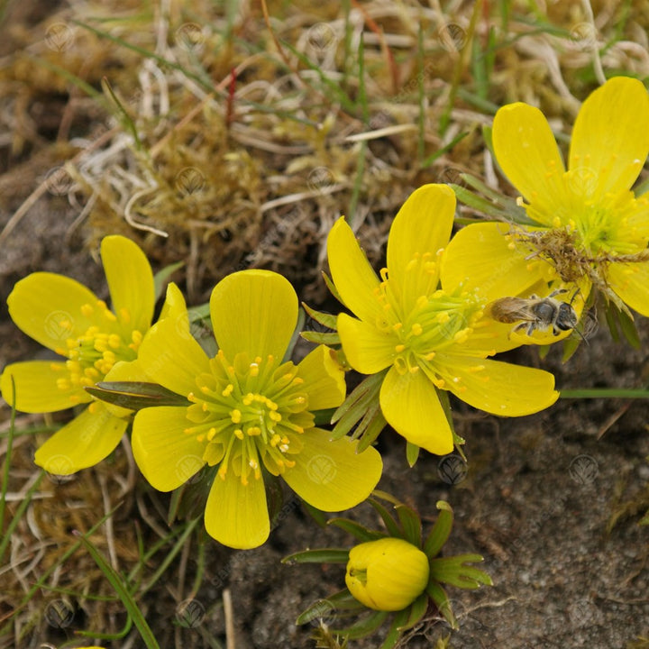 Plant Eranthis in fertile soils, that are well-drained, but with maintained moisture and depending on the specific plant, can be used in full sun to more shaded areas. Grows by a tuber which should be soaked overnight and planted 5-8cm deep