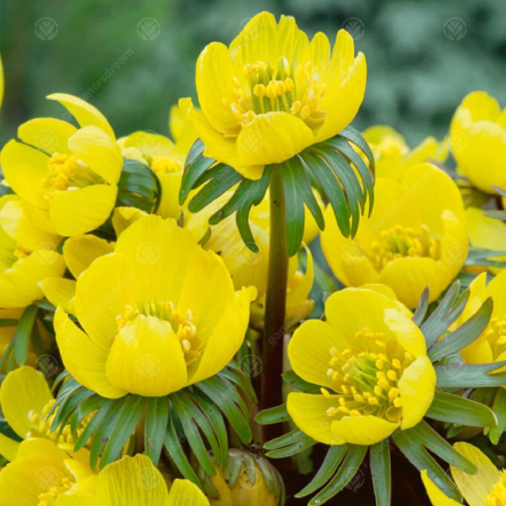 Ideal for naturalising areas which are in accordance with their growing requirements, especially under trees or bushes, Eranthis will spread and provide plentiful golden yellow blooms in the early spring time. Tubers of Eranthis that are left alone will flourish over time and spread out in woodland garden settings. More sun is needed during the bloom time to ensure plant blooming and growth, but then it is necessary to avoid extreme heat, which makes the plant perfect for areas which will later be covered by a leaf canopy from taller trees and plants.