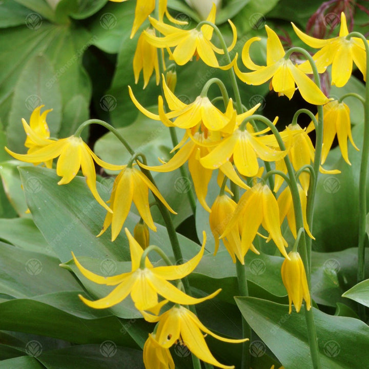 Numerous golden yellow blooms, Erythronium Kondo is a vigorous blooming specimen of the Genus of Erythronium. Ideally used towards the front of beds, borders or rock gardens and left undisturbed in underplanting areas will naturalise.