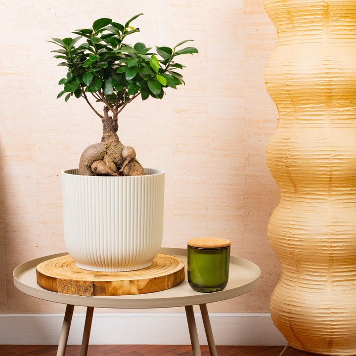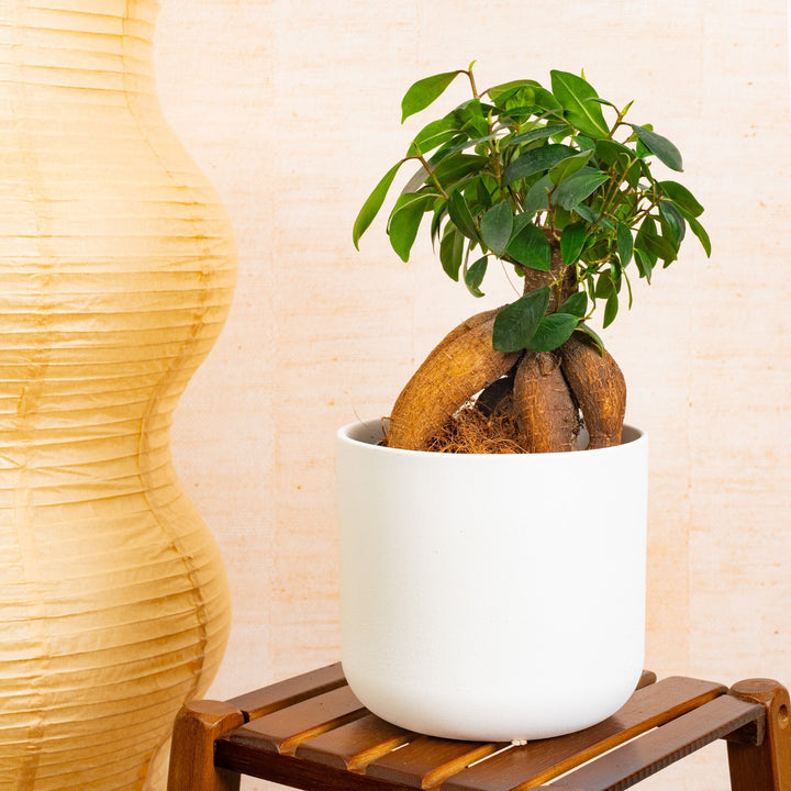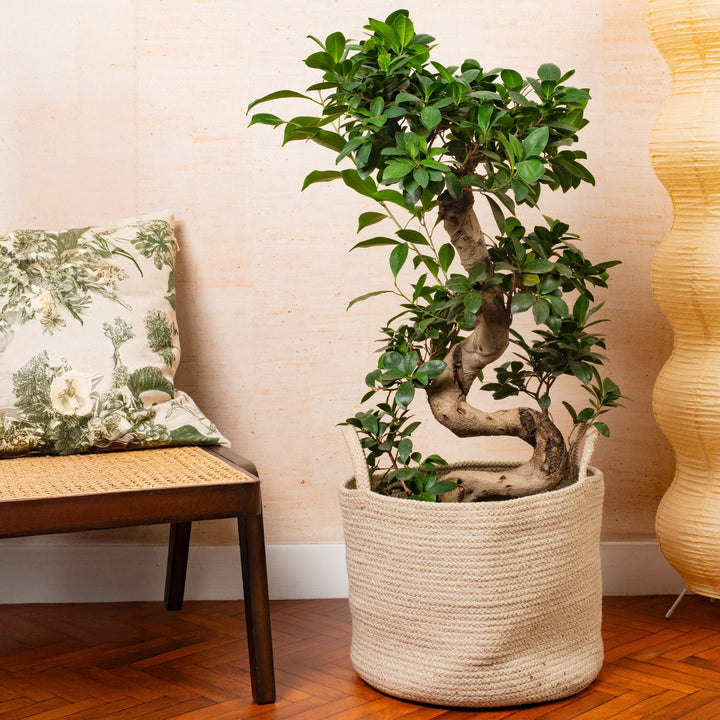 The Ficus ginseng, also known as Ficus retusa, is a species of evergreen bonsai tree native to Southeast Asia. It's prized for its unusual, fleshy trunk and root-like structures that give it a unique, ginseng-like appearance. The Ficus ginseng can grow up to two meters tall but is often kept much smaller through pruning and training. The tree produces oval-shaped, dark green leaves that can grow up to 15cm in length and 10cm in width. The leaves are thick and leathery, and are arranged in a dense, bushy pattern, making it an attractive addition to any indoor space. Despite its unusual appearance, the Ficus ginseng is a relatively low maintenance plant that is ideal for those who want to bring a touch of the tropical into their homes. It thrives in bright, indirect light and warm, humid conditions, and is forgiving of occasional neglect. So, if you're looking for a unique, attractive, and low maintenance plant to add to your home or office, the Ficus ginseng is an excellent choice.