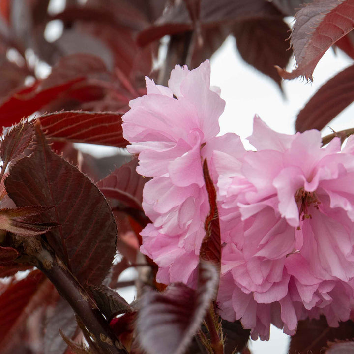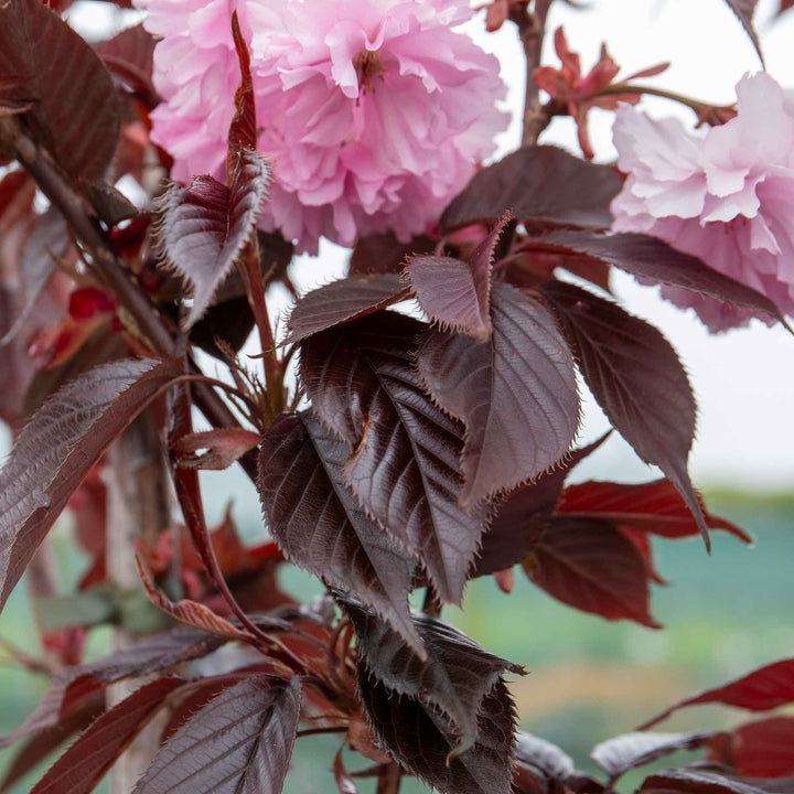 This beautiful ornamental tree features eye-catching, deep rose-pink double flowers that cover the entire tree in spring, creating a spectacular display. Its rich burgundy leaves add a bold touch through summer and transition to fiery bronze shades in autumn, enhancing seasonal interest. With a vase-shaped habit, it’s perfect for both formal and natural garden settings, providing beauty even when leafless in winter.