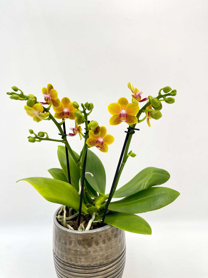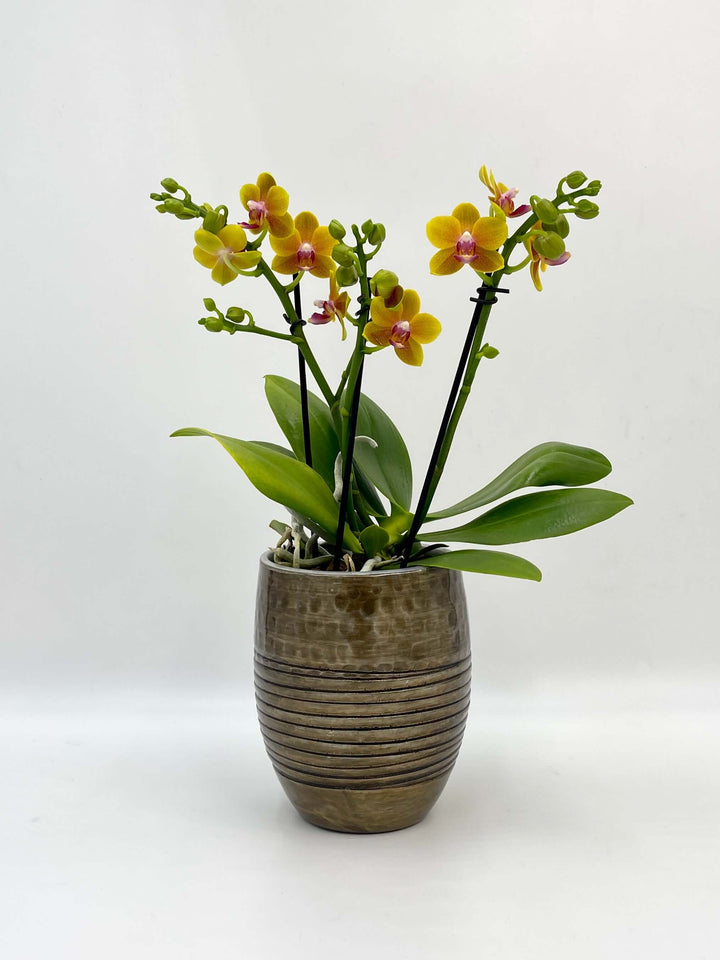 It is essential to place your Orchid in a spot with bright, indirect light and to avoid direct sunlight. Water it regularly, allowing the potting mix to dry out slightly between waterings, and during the growing season, feeding is recommended.