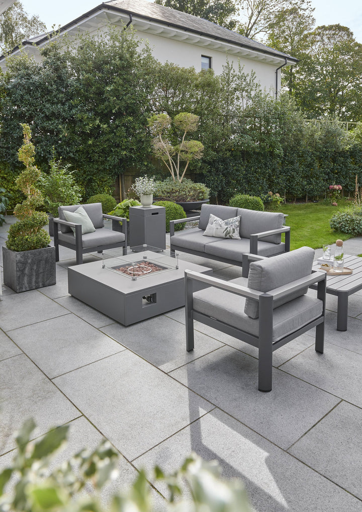 Transform your garden into a luxurious retreat with the Gio 4-Seat Lounge Set with Coffee Table and Fire Pit Coffee Table. Designed for minimal maintenance, this set offers endless relaxation and socialising in your outdoor space. Enjoy cosy nights outside around the Fire Pit Coffee Table which offers the ideal place for drinks and snacks.