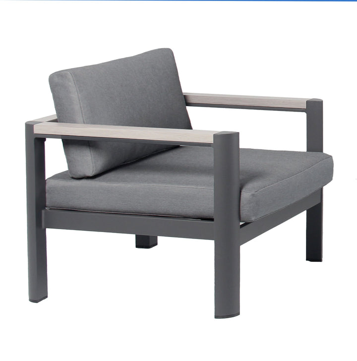 Comfort and low maintenance go hand in hand with weatherproof cushions on each chair, offering both comfort and durability against the elements.