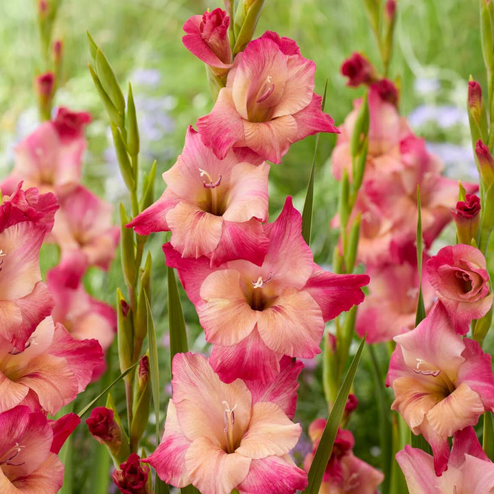 Gladiolus Apricot Bubblegum is a captivating summer-flowering bulb that produces tall spikes adorned with apricot-colored blooms. These elegant flowers make a striking addition to garden borders and are excellent for cutting, bringing a touch of summer warmth indoors.