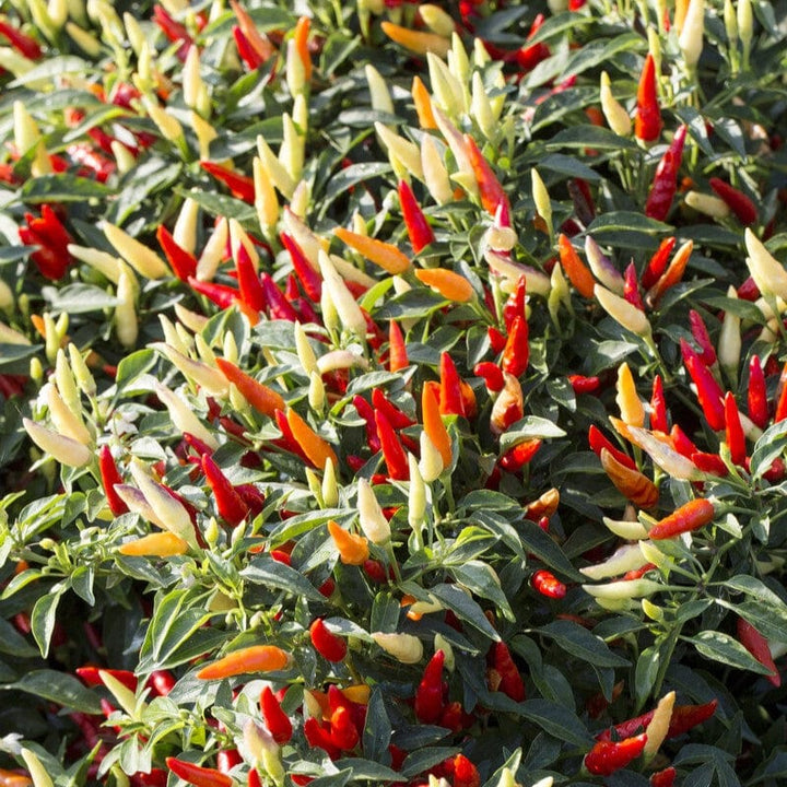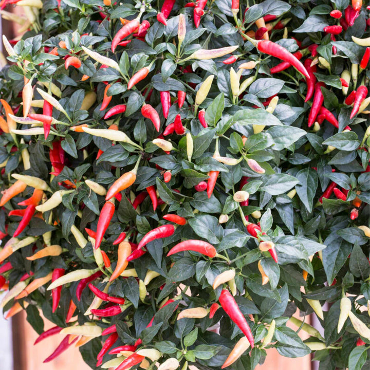 - These spicy little chillies not only taste great but bring a rainbow of colour to your garden, maturing from purple through yellow and orange to bright red. They can be grown in pots and hanging baskets