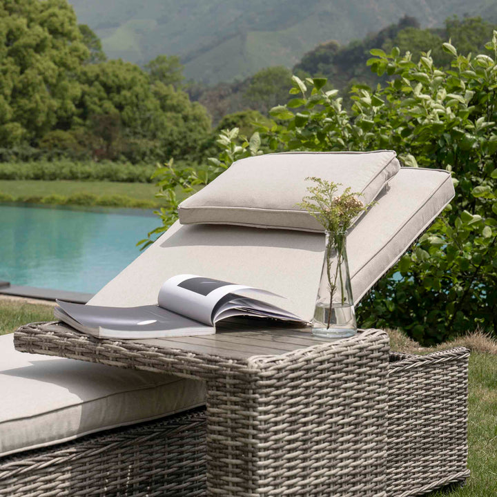 Hampshire Round Wicker Rattan Sun Lounger, Light Grey