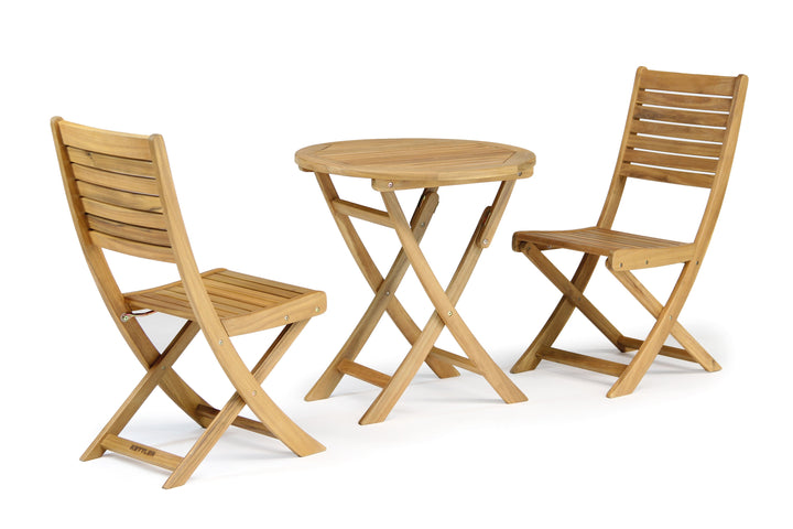 Introducing the Kettler Hampton Bistro Set—a charming and space-saving solution for intimate outdoor dining. This elegant set includes two folding bistro chairs and a 70cm round folding table, all crafted from FSC®-certified eucalyptus wood, known for its natural weather resistance and durability. The compact, foldable design makes it ideal for patios, balconies, or smaller gardens, allowing for easy storage when not in use. Part of the Hampton collection, the set pairs beautifully with other pieces in the range, offering a cohesive and timeless look for your outdoor space.