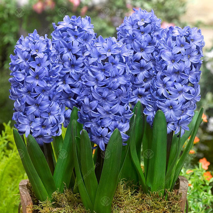 Delft Blue produces multitudes of star-shaped flowers on racemes of a central spike growing from the bulb. Tightly packed blooms of porcelain to periwinkle blues completely cover the raceme in both beauty and fragrance. Specially prepared with earlier colder temperatures in order to induce earlier indoor blooming.
