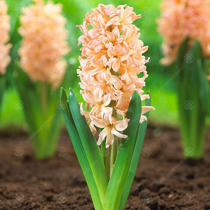 After the flowering season, the Hyacinth flower stalk can be removed, but leave the green foliage to gather energy and store in the bulb for the following season. Hyacinth bulbs are generally planted at a depth of about three times the diameter of the bulb, for most plants this is usually around 15-20cm. Plant Hyacinth bulbs 15cm apart. Depending on the variety, a Hyacinth can grow to 15-30cm in height and the bloom stalks may need to be staked.