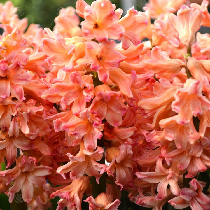 Hyacinths (Hyacinthus orientalis) are composed of clusters of small, bell shaped flowers with curved petals and are often very fragrant. Leaves are long, narrow and a dark green colour. Hyacinth blooms form in a variety of colours, from vibrant pinks to deep blues. Flowers on Hyacinths grow on racemes of dense clusters on single stalks.