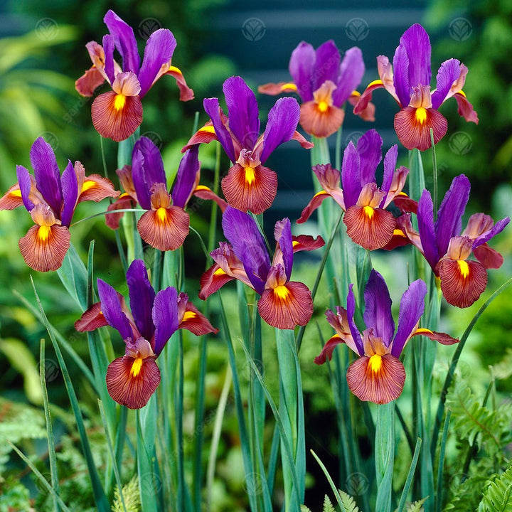 Two of the most popular and well-known Iris varieties are composed of dwarf varietals (Iris Dwarf) and Dutch Irises (Iris hollandica). Dwarf Irises begin the season of flowering Iris in February and March and the Dutch Iris varieties bloom towards the beginning of summer around June. Iris are favoured ornamental flowering plants that present a rainbow of colours and distinct differences in their bloom structure.