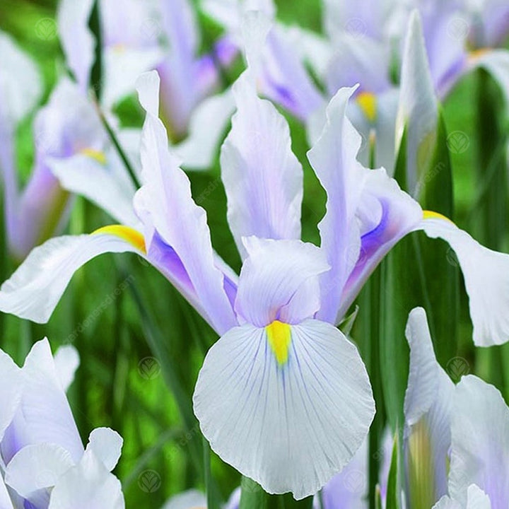 Two of the most popular and well-known Iris varieties are composed of dwarf varietals (Iris Dwarf) and Dutch Irises (Iris hollandica). Dwarf Irises begin the season of flowering Iris in February and March and the Dutch Iris varieties bloom towards the beginning of summer around June. Iris are favoured ornamental flowering plants that present a rainbow of colours and distinct differences in their bloom structure.