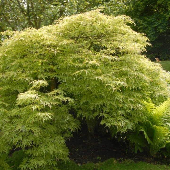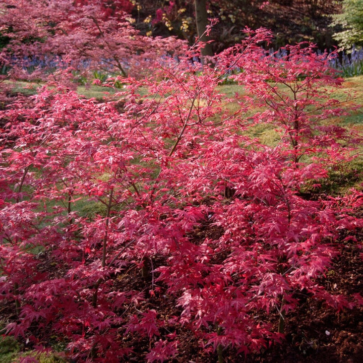 - The deeply lobed and serrated palmate leaves unfurl pink in spring, turn bright green in summer and in autumn put on a stunning display of warm oranges, golds and reds