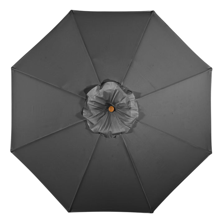 This Kratos 3m Wooden Parasol in Grey is a collapsible round parasol, operated by a pulley system which can be used with either a Dining Table or as a standalone Parasol with a base.