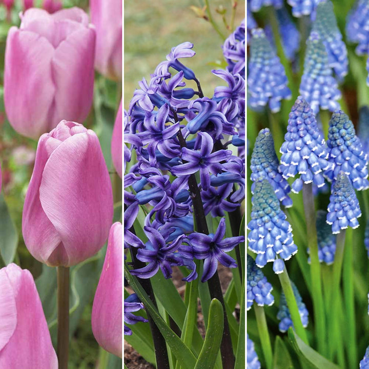 Pack Contents: 20 Tulip Triumph Synaeda Amor bulbs 11-12, 5 Hyacinth Orientalis Peter Stuyvesant bulbs 14-15, 15 Muscari Armeniacum bulbs 7-8.