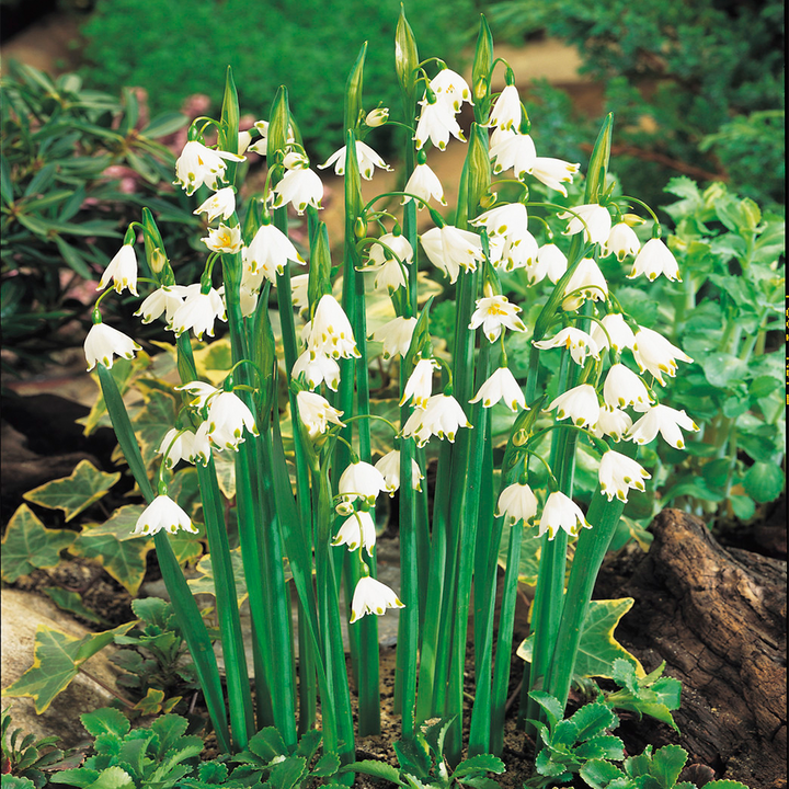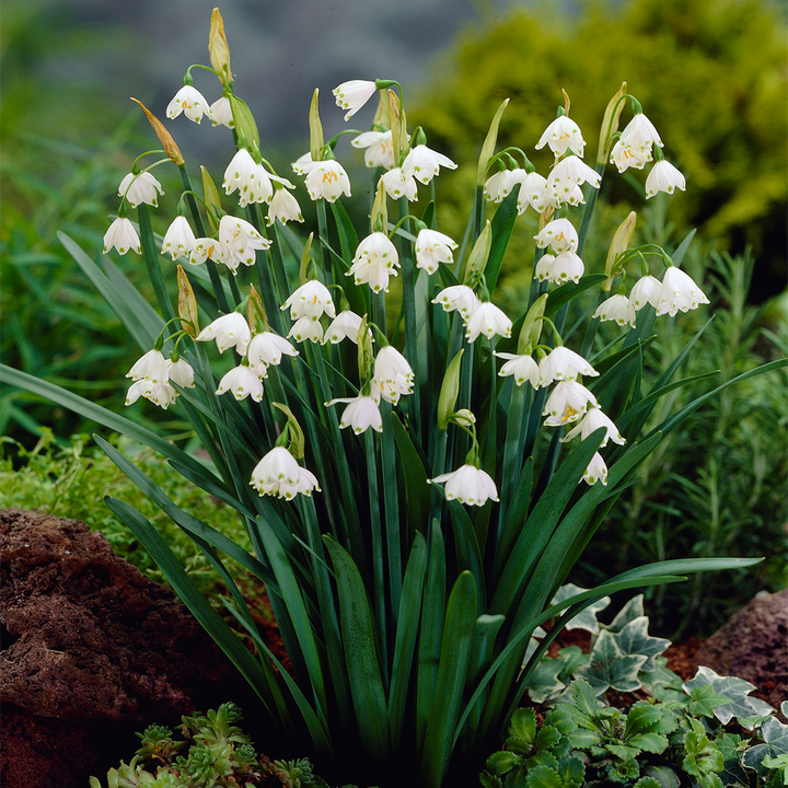Leucojum bulbs prefer being in moist - but not overwatered - soils, which are ideal for planting in beds, borders, banks or baskets. Plant the bulbs approx 8-10cm deep and expect flowering throughout April & May.