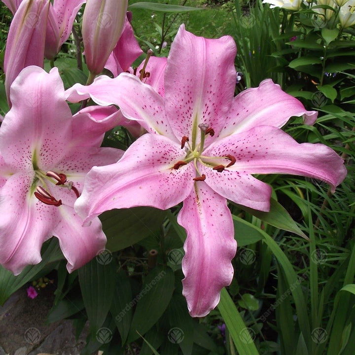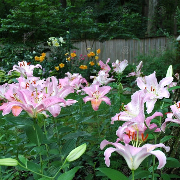 Lilies in the genus of Lilium are herbaceous perennial ornamental flowers that grow from bulbs. Two of the most popular varieties are Asiatic and Oriental lilies. Asiatic lilies are generally easy to grow and very showy with a variety of colours but are generally shorter (50-90cm). Oriental lilies are notably taller (100-120cm or more), slower growing and noteworthy for their wonderful fragrances. Asiatic lilies bloom early in the late spring and early summer, whereas Oriental lilies start blooming towards the beginning of summer up to the end of summer.