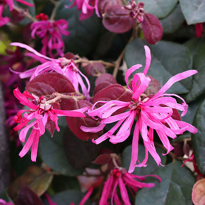 Loropetalum 'Chinense Fire Dance’ is an evergreen ornamental tree, with beautiful multi-coloured star shaped leaves. Due to their sturdy 'lollipop' single straight stem, this hibiscus tree is Ideal to situate in small gardens, patios, flower borders and beds! These long flowering trees will thrive in partial shade or full sun - make sure to water regularly during the warmer months.