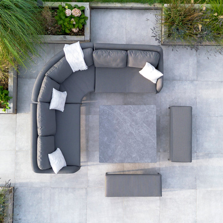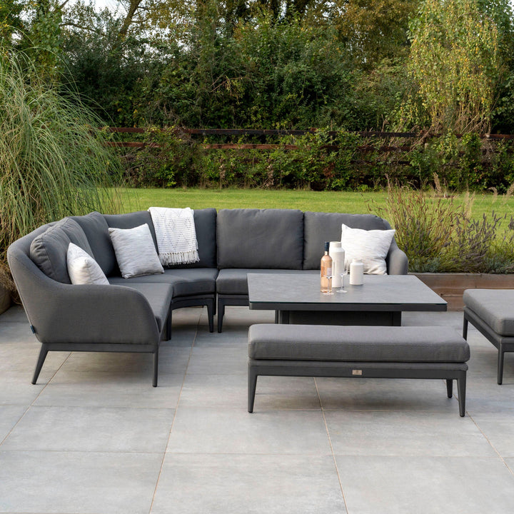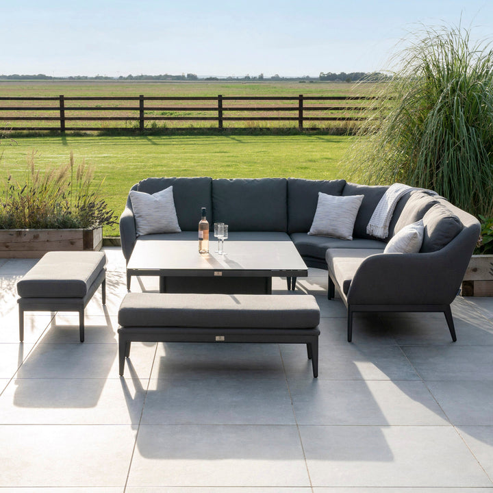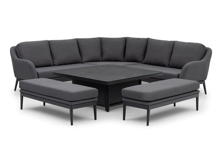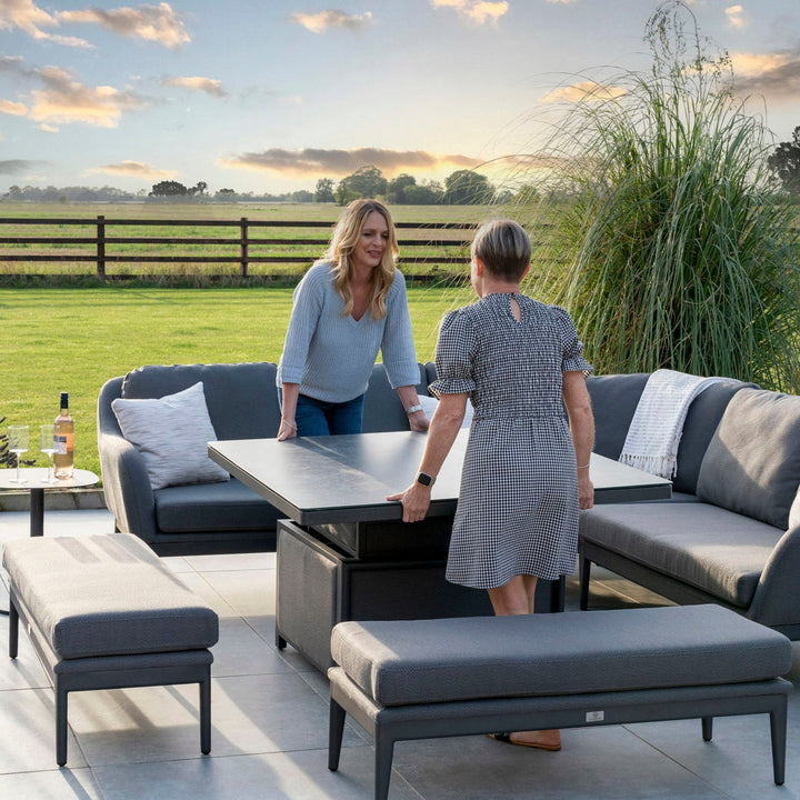 Luna Deluxe Outdoor Fabric Square Corner Dining Set with Rising Table in Grey