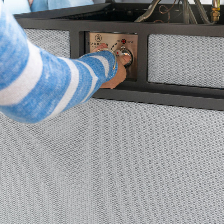 The Harbour Lifestyle Luna Deluxe Outdoor Fabric Curved Corner Dining Set with Rising Firepit Table is designed to enhance any outdoor space. Featuring a curved corner sofa upholstered in durable outdoor fabric and an elegant rising table, this set is perfect for both lounging and dining, thanks to its adjustable table.