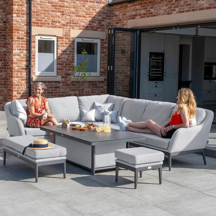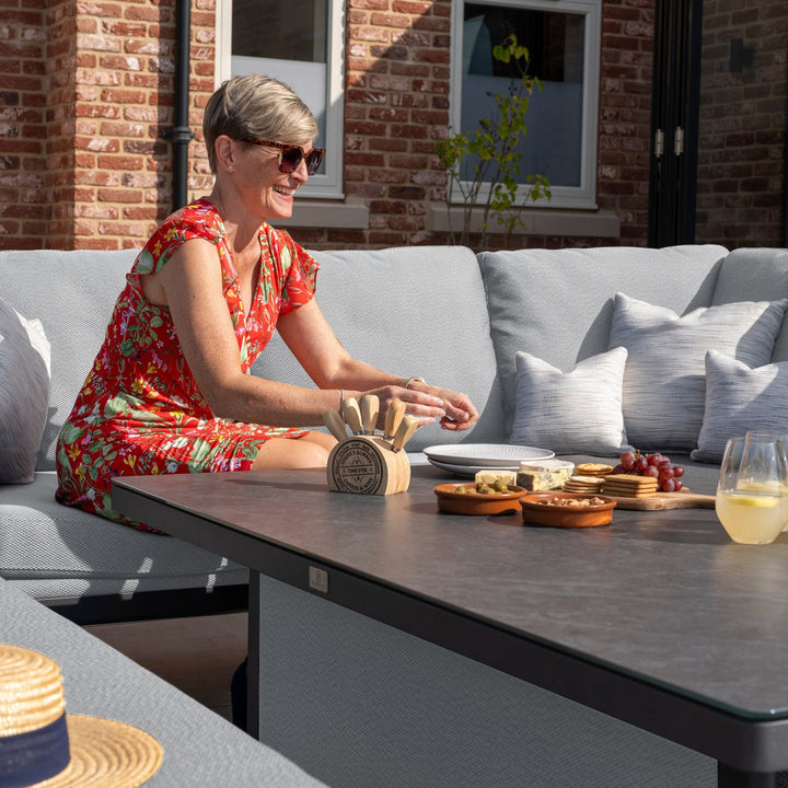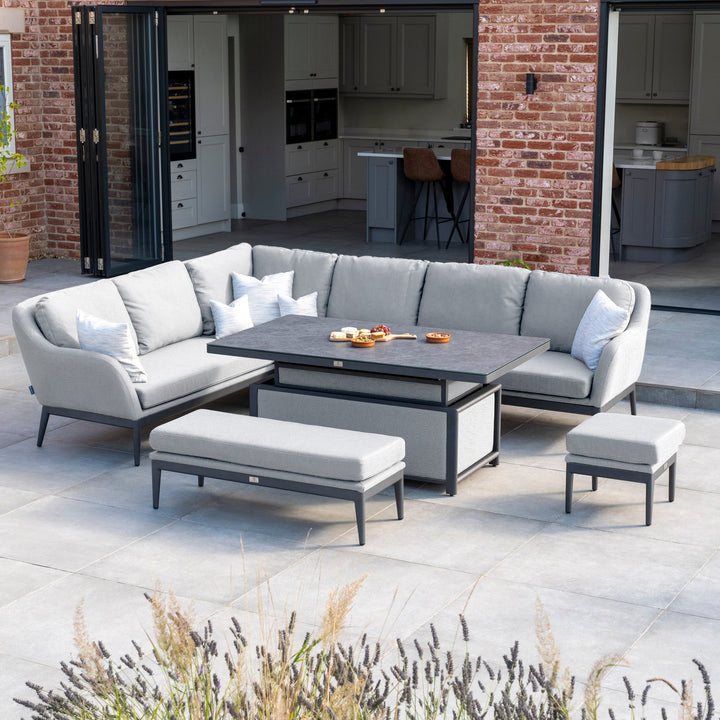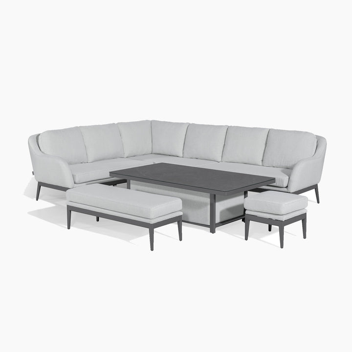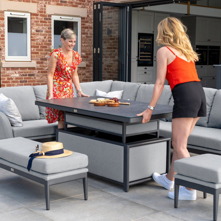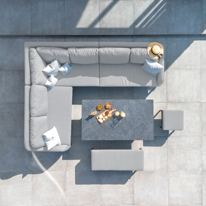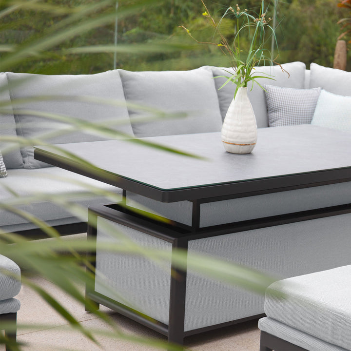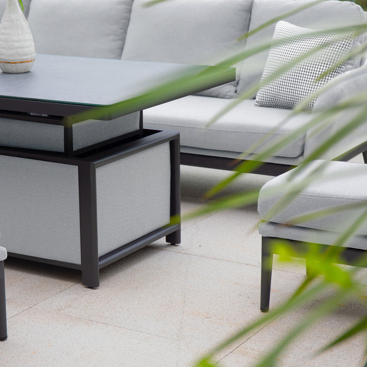 Luna Outdoor Fabric Rectangular Corner Dining Set with Rising Table in Oyster Grey (Left Hand)