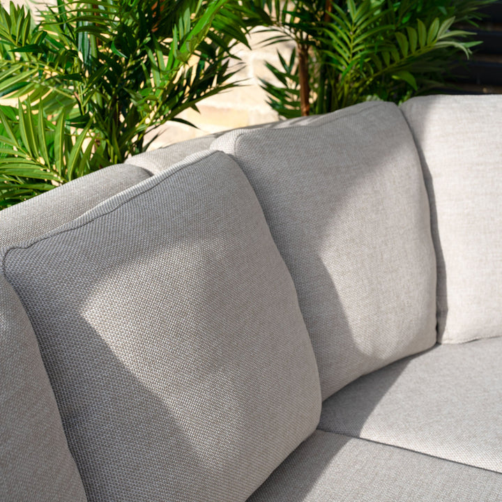 A set that will complement any outside space, the Harbour Lifestyle Luna U-Shape Outdoor Fabric Corner Dining Set with Rising Firepit Table is made from an aluminium frame which is finished with TIGER Drylac® Powder Coating.