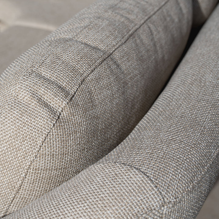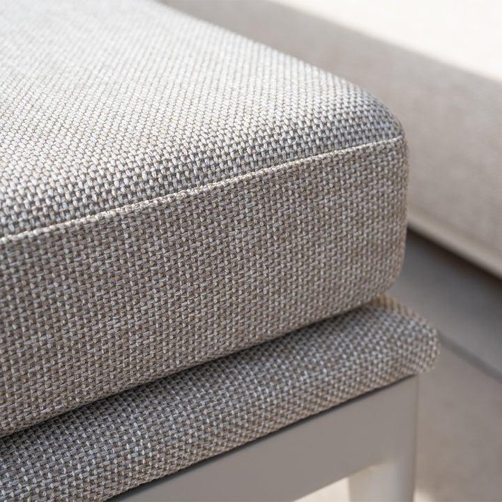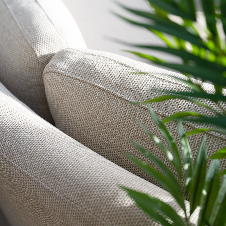 The Luna outdoor fabric range has been expertly designed to endure year-round exposure to the elements with minimal upkeep required. Our Luna fabric is crafted using solution dyed olefin which is spun into a yarn and skilfully woven. This yields an exceptionally resilient all-weather material boasting 460gsm, far surpassing the industry norm of 230gsm - offering unparalleled comfort and stain resistance.