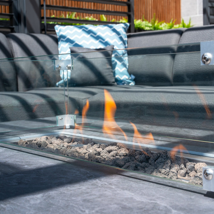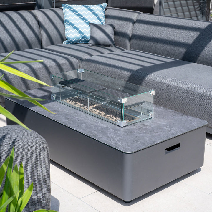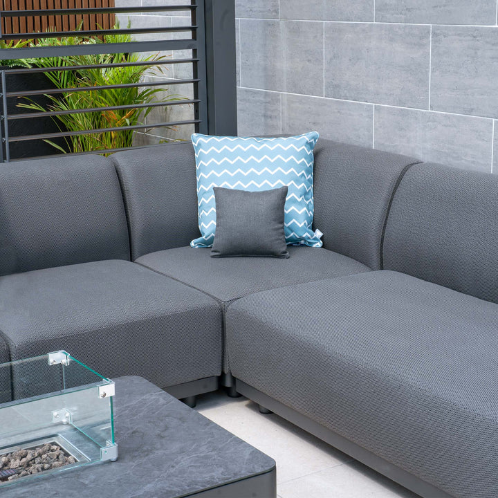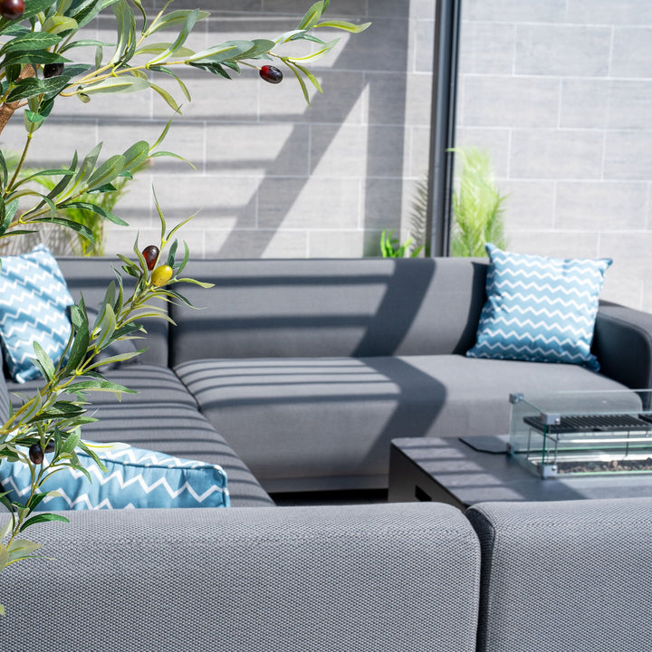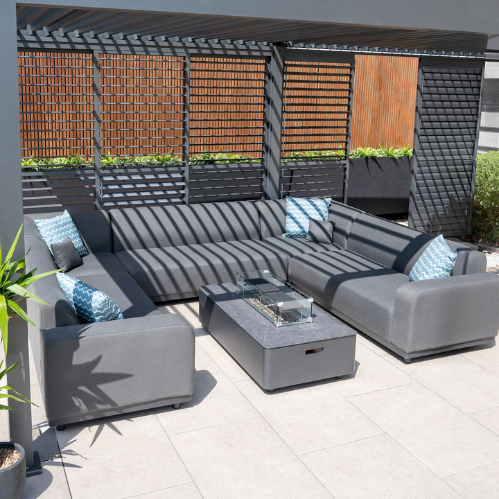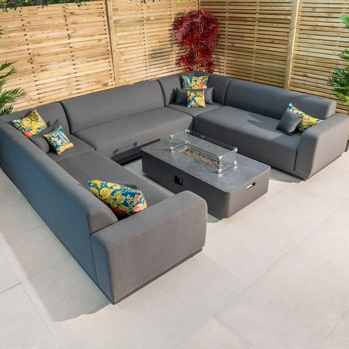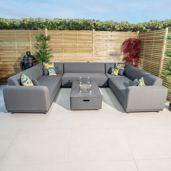 Luna U-Shape Outdoor Fabric Sofa Set with Firepit Coffee Table in Grey