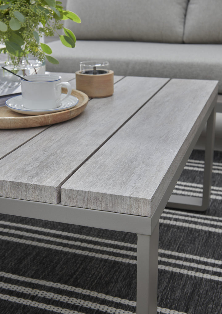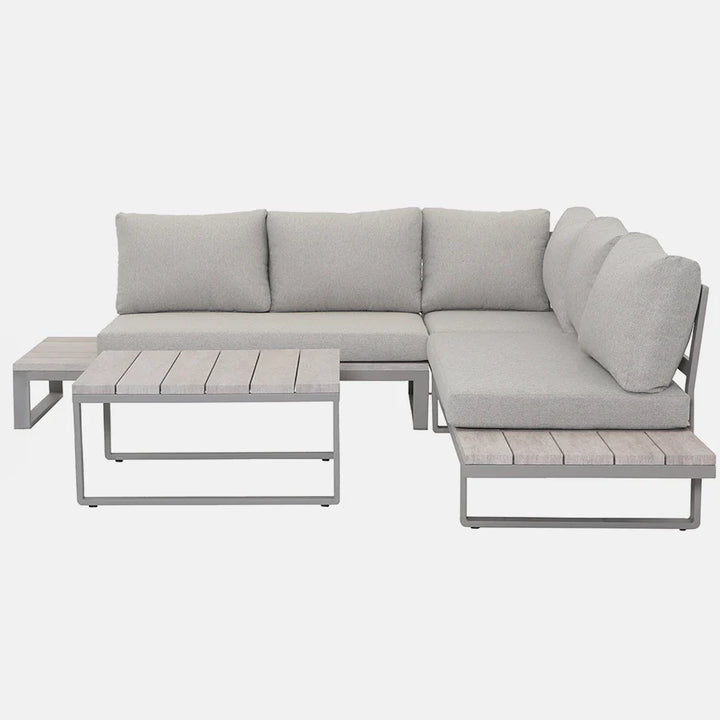 The Marina Corner Set brings contemporary elegance and everyday functionality to your outdoor space. New for 2025, it features a fresh colourway and a design that blends comfort and style. With weatherproof seat pads, integrated side tables and a sleek wood-effect coffee table, the Marina set is perfect for relaxing outdoors. Made from lightweight yet robust aluminium, it promises strength without the hassle of high maintenance. Ideal for entertaining or unwinding, this set is the ultimate addition to your garden or patio.