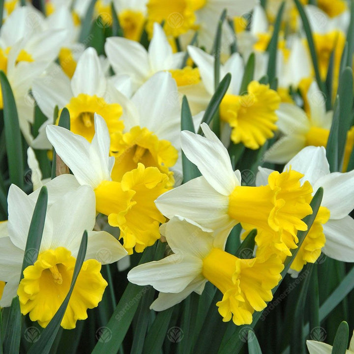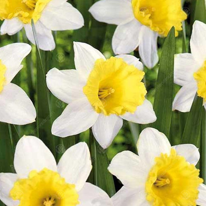 The flowers are generally yellow, orange or white with either uniform cups and petals or contrasting colours