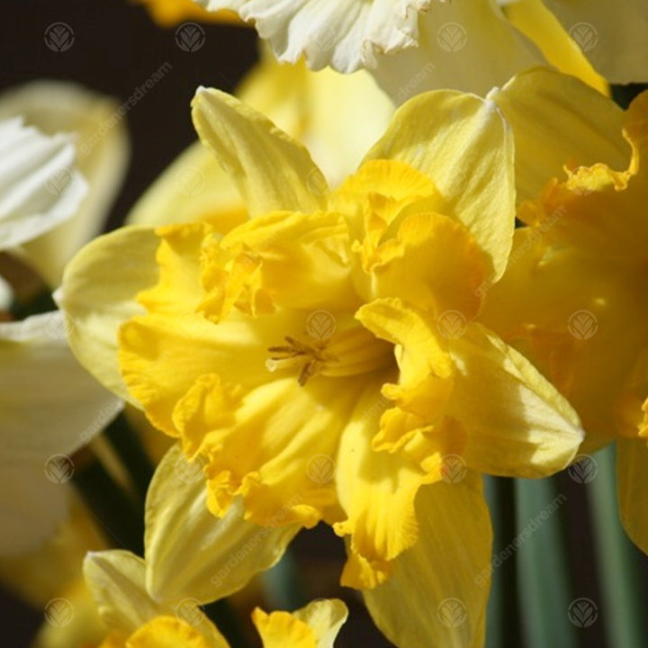 Daffodils can be divided into 13 different types, these differences are mostly based on variations of the cups (corona) and the petals (perianth). Daffodils are commonly and interchangeably called Narcissus or Narcissi. Specifically, daffodils are the varieties which have larger cups and larger overall blooms.