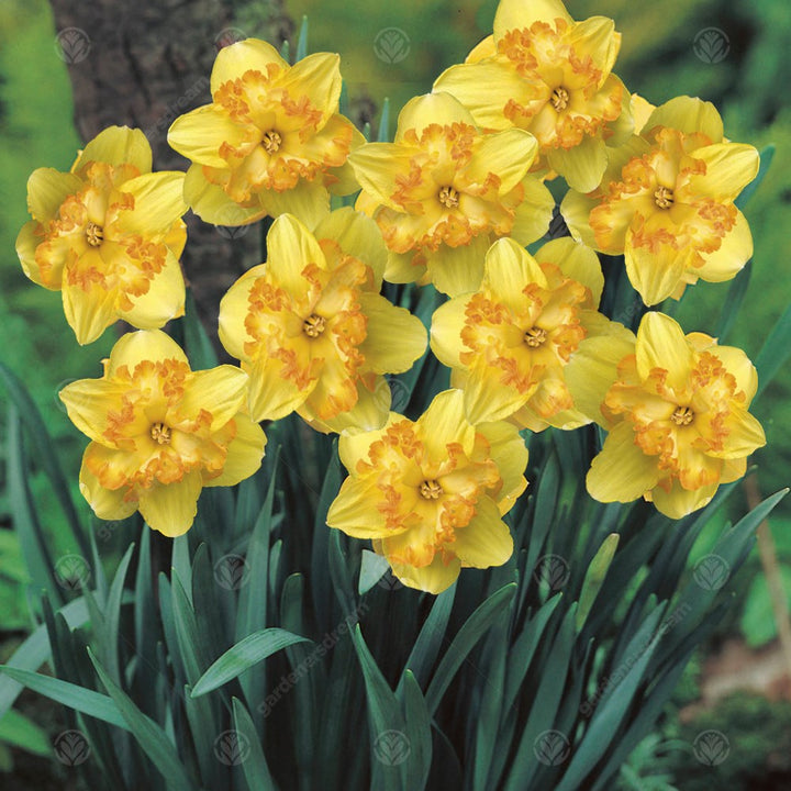 The flowers are generally yellow, orange or white with either uniform cups and petals or contrasting colours.