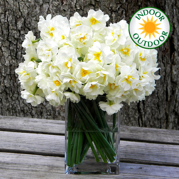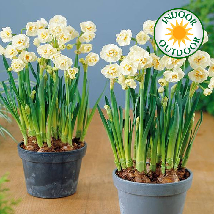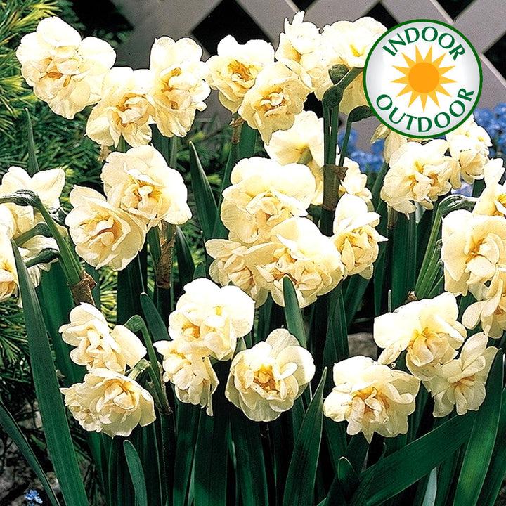 Bridal Crown' is a bulbous perennial to 30cm tall, with very fragrant, fully double, creamy-white flowers to 4cm wide, the petal-like inner segments mostly yellow.
