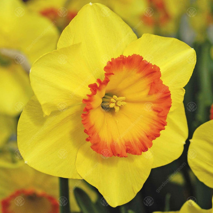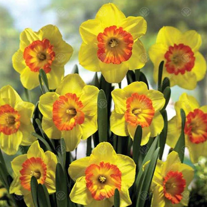 The flowers are generally yellow, orange or white with either uniform cups and petals or contrasting colours.