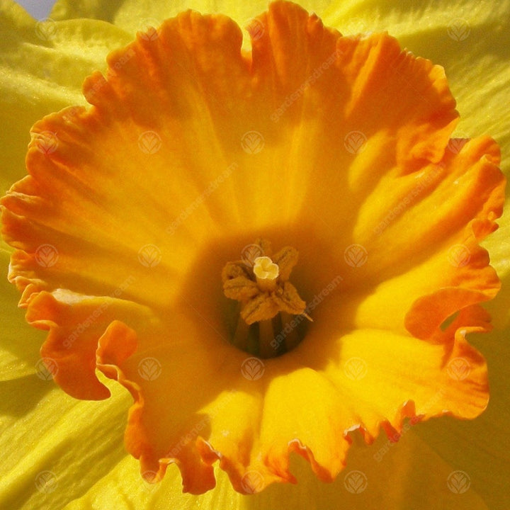 Delibes is part of the division 2, large-cupped daffodils. They have a broad, frilled corona with orange tones, the interior of which is a gentle yellow-orange and the frilled rim is an energetic orange colour. The exterior petals are a lovely yellow colour.