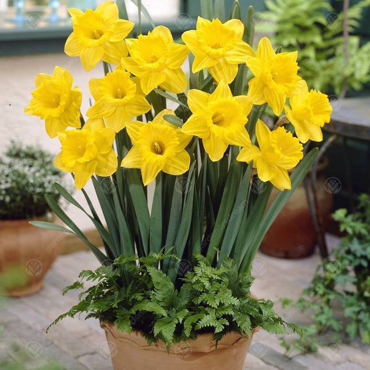 Daffodil bulbs planting time is in the autumn season, approximately 2-4 weeks before the ground freezes. In more severe climates, ensure that the bulbs are covered with at least 6-7 cm of soil. The general rule is to plant the bulbs to a depth that is three times (3X) the size of the bulb. Also, a good depth will help reinforce the plant structure during growth to prevent bending or drooping.