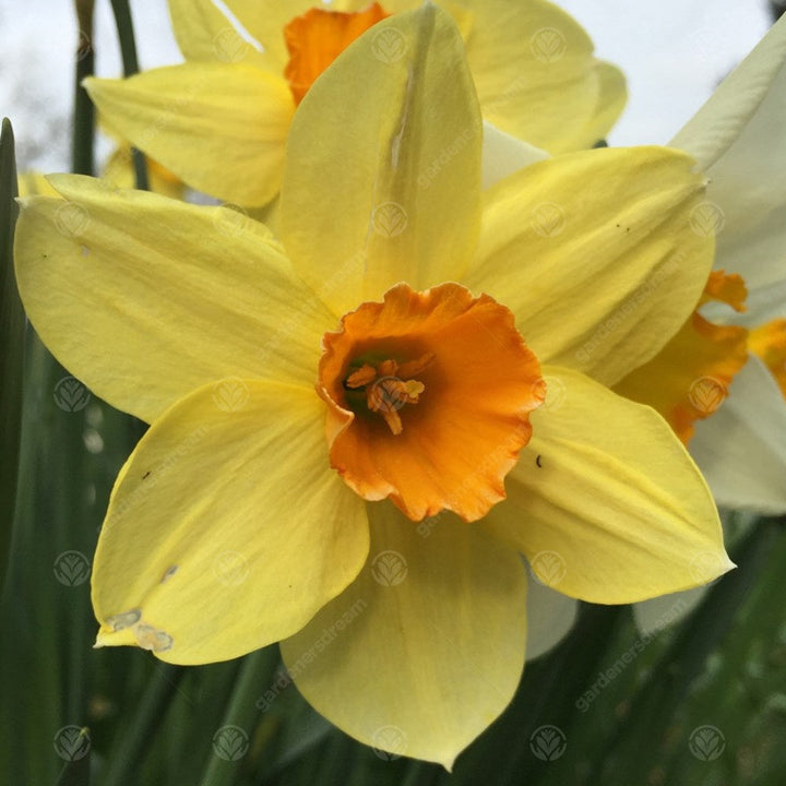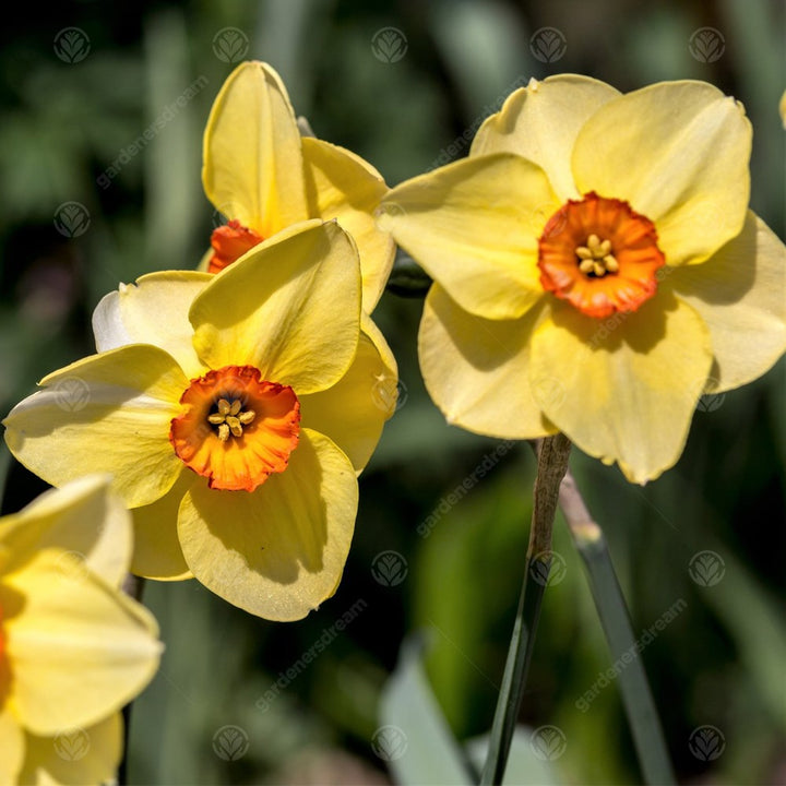 The flowers are generally yellow, orange or white with either uniform cups and petals or contrasting colours.