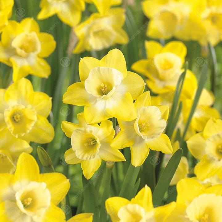 Hillstar is a division 7, Jonquilla Daffodil that has multi-headed blooms which are bi-coloured. The slightly curved petals are usually bright yellows on the exterior and turn a creamier, yellow-white in the interior, leading to the central corona which is gently ribbed and often a soft yellow-white colour. As the blooms age, they can turn from stronger pure yellows to more bi-coloured whites and yellows.