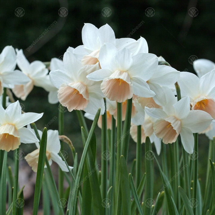 Narcissi are bulbous herbaceous perennials which require moist, but well-drained soils in full sun to partial shade. Most varieties of Narcissi prefer sheltered locations away from strong winds, while some varieties are stouter and can tolerate more exposed locations. Although plant-specific variations do exist, most varieties of Narcissi prefer pH neutral soils, with some preferring slightly more acidic or alkaline soils in order to produce the best blooms. Due to the possibility of bulb rot, Narcissi require soils that are well-drained.