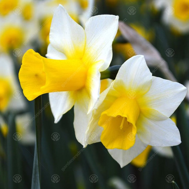 The flowers are generally yellow, orange or white with either uniform cups and petals or contrasting colours.
