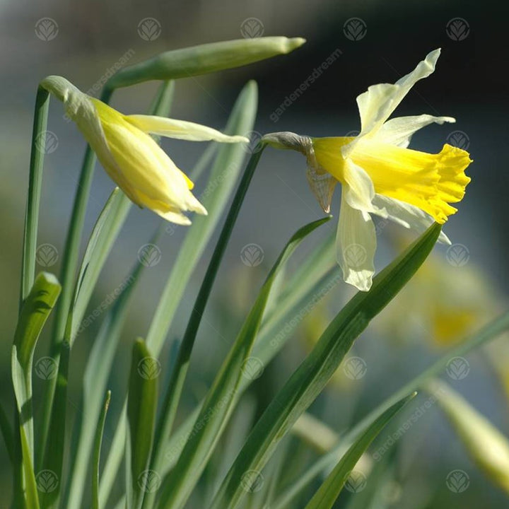 Narcissi are bulbous herbaceous perennials which require moist, but well-drained soils in full sun to partial shade. Most varieties of Narcissi prefer sheltered locations away from strong winds, while some varieties are stouter and can tolerate more exposed locations. Although plant-specific variations do exist, most varieties of Narcissi prefer pH neutral soils, with some preferring slightly more acidic or alkaline soils in order to produce the best blooms. Due to the possibility of bulb rot, Narcissi require soils that are well-drained.
