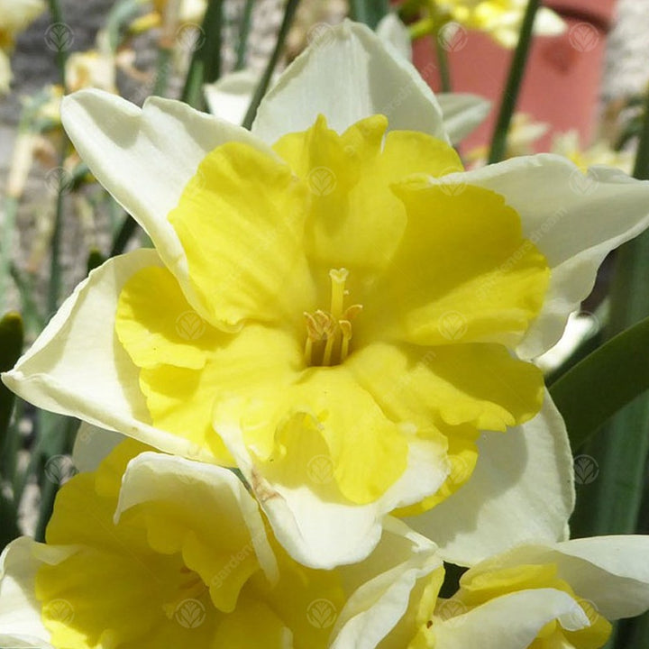 Plant Narcissi bulbs with the root cluster downwards, usually identified by a rougher area and the tip or point of the bulb upwards. In general, Narcissi are planted to the depth of 1.5 to 2 times the size of the bulb, usually in the range of 15-20cm, ensuring that none of the bulb is exposed. In very cold areas, Narcissi may require winter mulching to protect them from frost.
