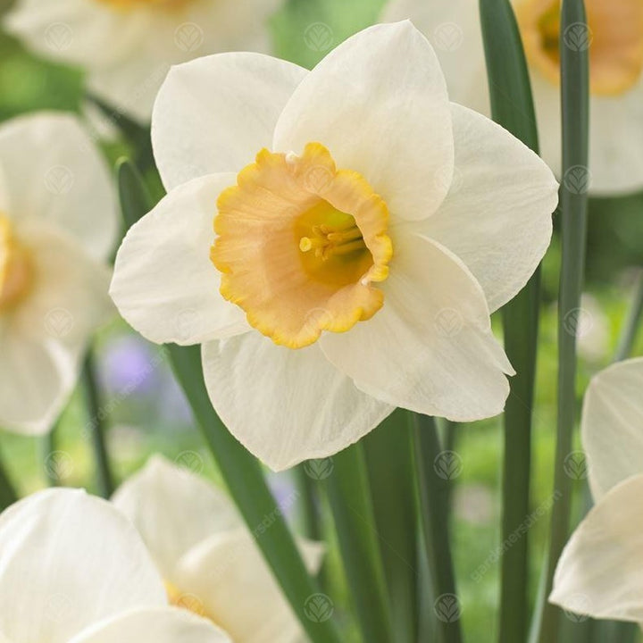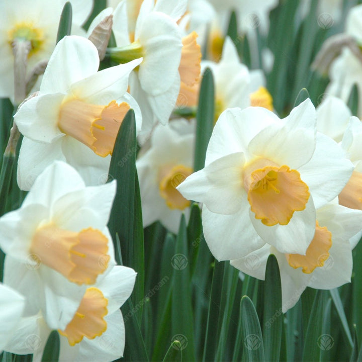 Part of the division 2 Narcissus, these beautiful flowers are large-cupped and very showy. In order to improve its pink colourations, it is recommended that they be planted in partially shaded areas. They grow well in pots and make great cut flowers