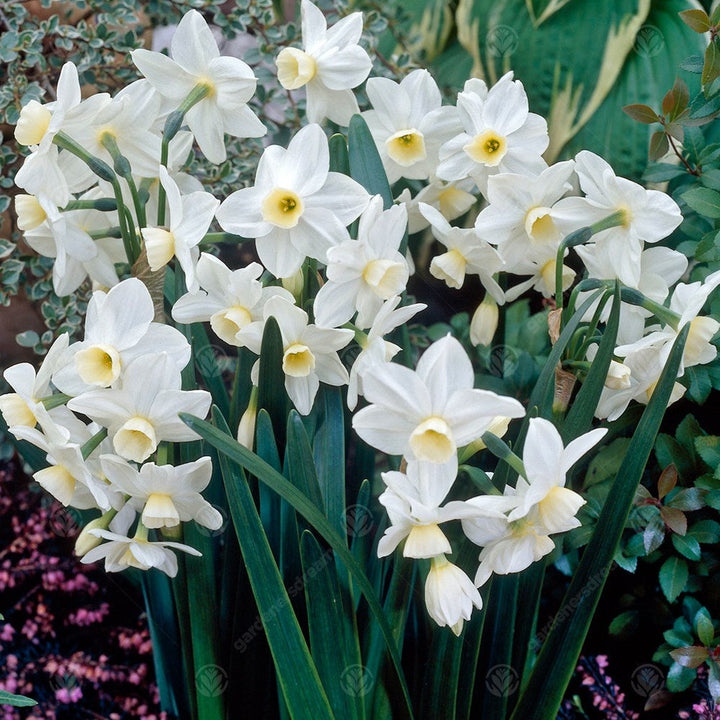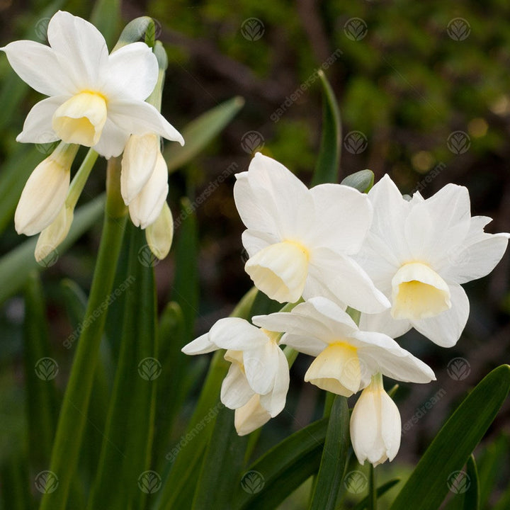 Narcissi refer to the plant species that while similar to Daffodils are both smaller in height and the size of the bloom, specifically the cup or corona. These characteristics do not diminish from the beauty of Narcissi, which are generally very colourful, showy and fragrant. Many of the Narcissi are the earliest bloomers of winter and early spring season and typically have a dazzling assortment of lemony yellows, golden oranges and stunning whites.