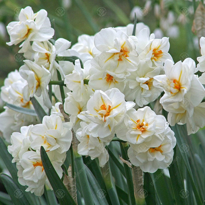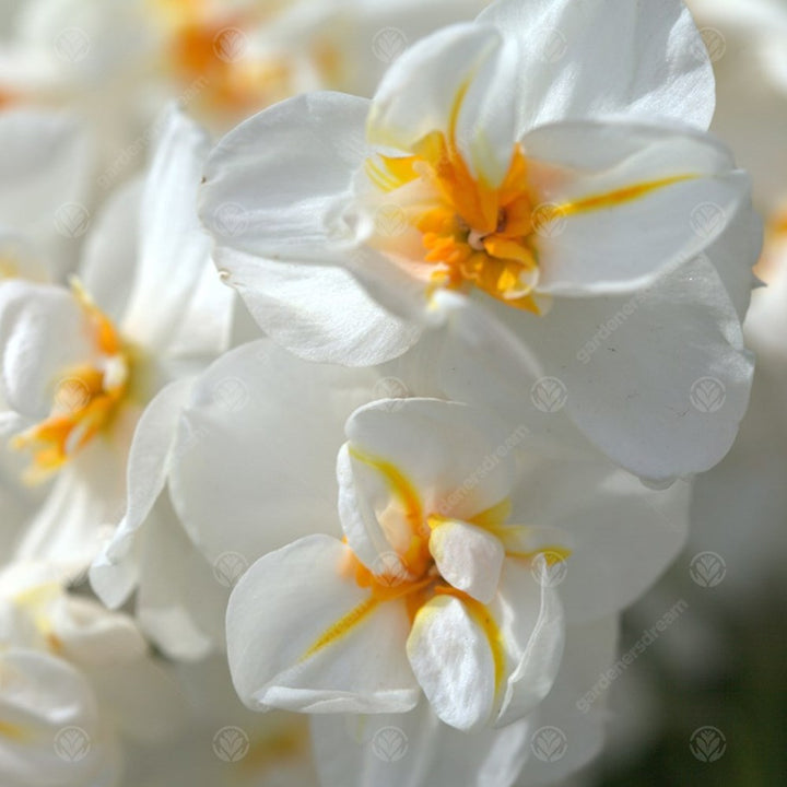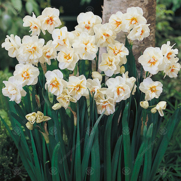 The flowers are generally yellow, orange or white with either uniform cups and petals or contrasting colours