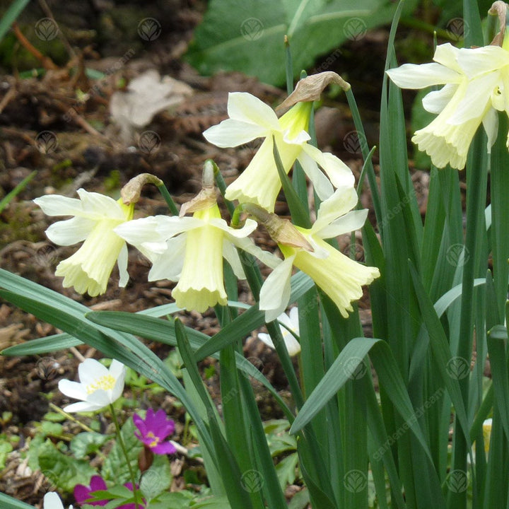 Plant Narcissi bulbs with the root cluster downwards, usually identified by a rougher area and the tip or point of the bulb upwards. In general, Narcissi are planted to the depth of 1.5 to 2 times the size of the bulb, usually in the range of 15-20cm, ensuring that none of the bulb is exposed. In very cold areas, Narcissi may require winter mulching to protect them from frost.