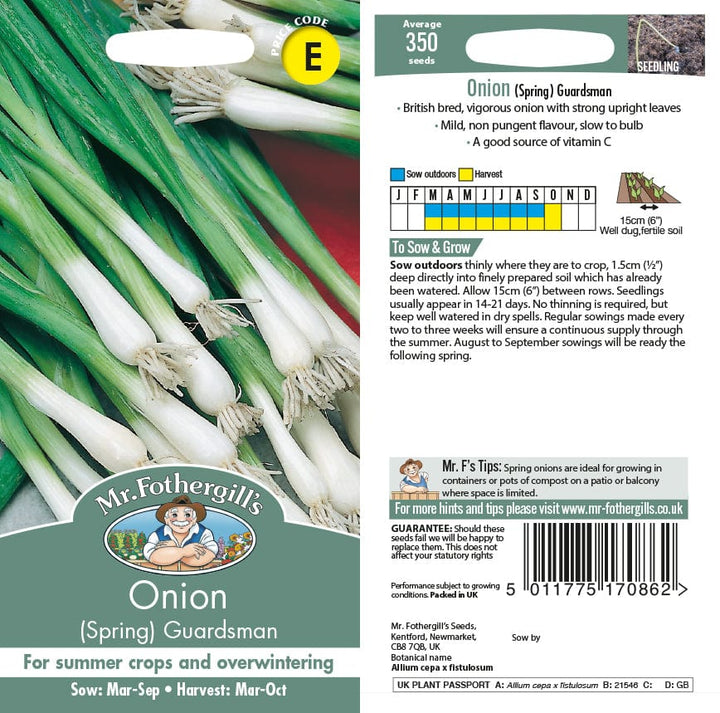 British-bred, vigorous salad onions with strong upright leaves and a supreme, non-pungent flavour. Slow to bulb, perfect for summer crops in the vegetable garden or in pots of compost on the patio.