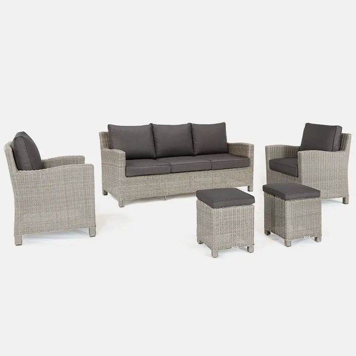 The Palma Lounge Sofa Set combines the timeless elegance of whitewashed wicker with the cozy warmth of taupe cushions, making it a stunning centrepiece for your conservatory or garden. Whether you’re enjoying a morning coffee or unwinding with friends in the evening, this sofa set offers unparalleled comfort and style.